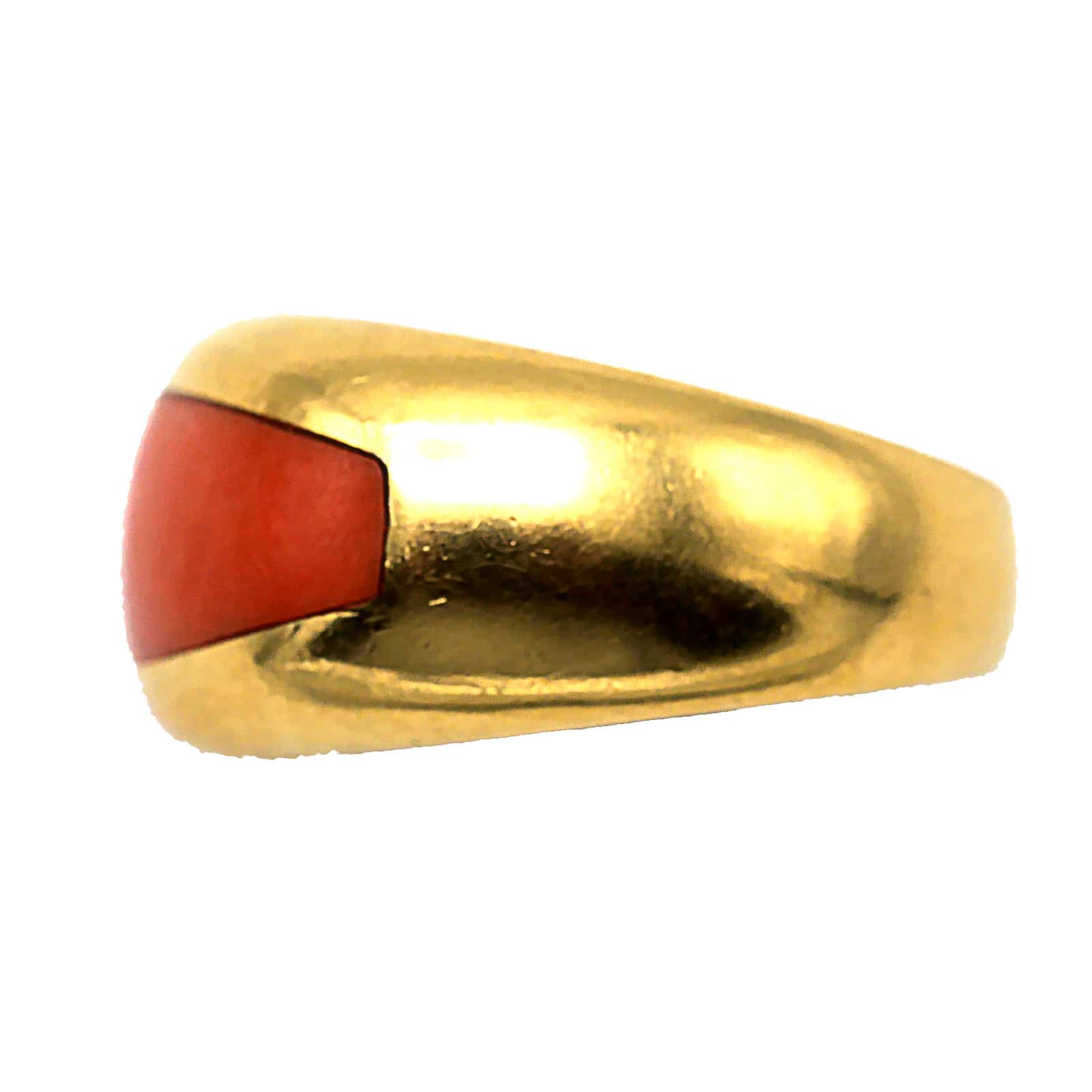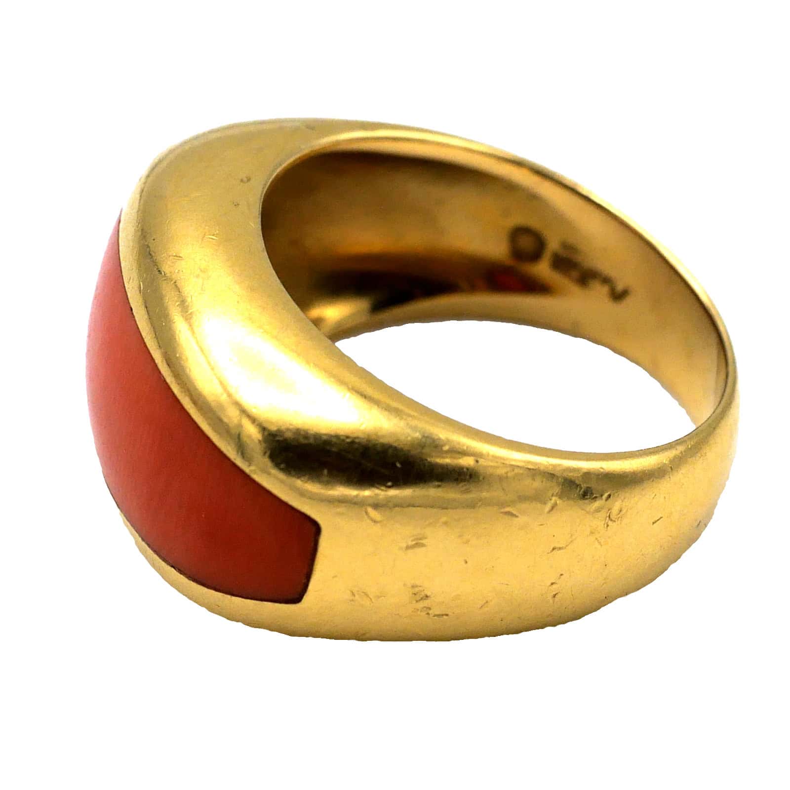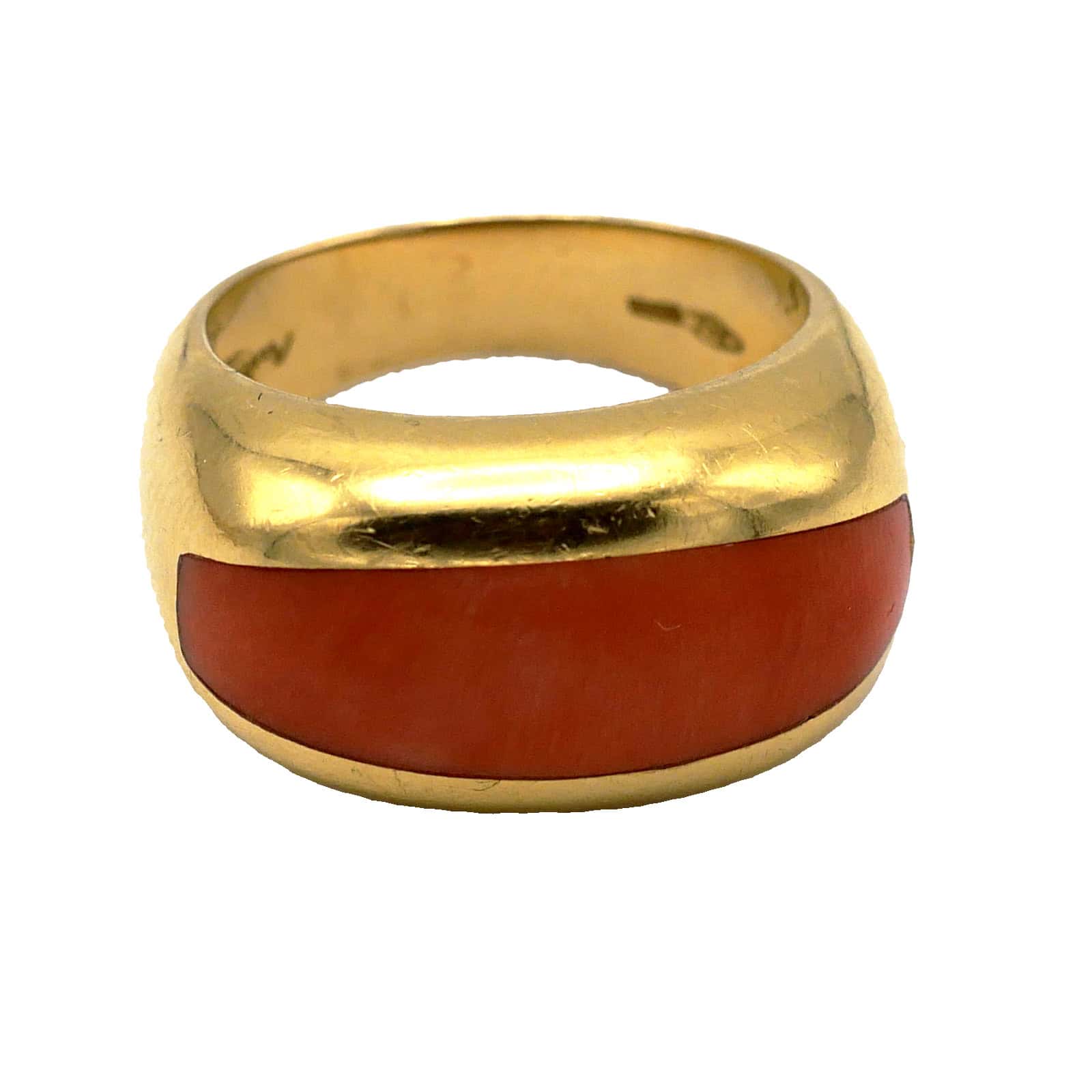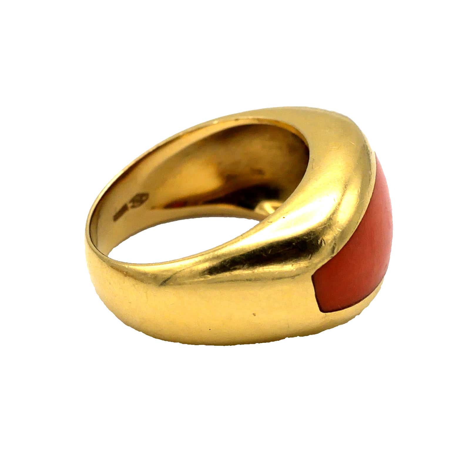 18-carats gold and Mediterranean coral ring. Made in Italy in the sixties.Sold
